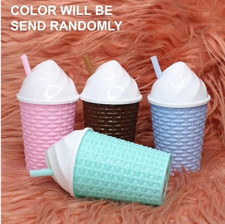 Design: Ice cream cone-themed cups with a textured body resembling a basket weave.